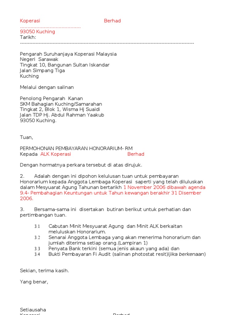 Contoh Mohon Honorarium Kop Pdf